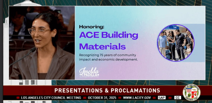 When the Los Angeles City Council met in the Valley on Halloween, one moment shone brightly for our entire team: Ace Building Materials received an official recognition celebrating 75 years of service to the San Fernando Valley. Councilmember Imelda...